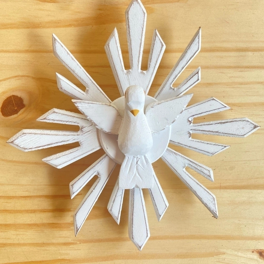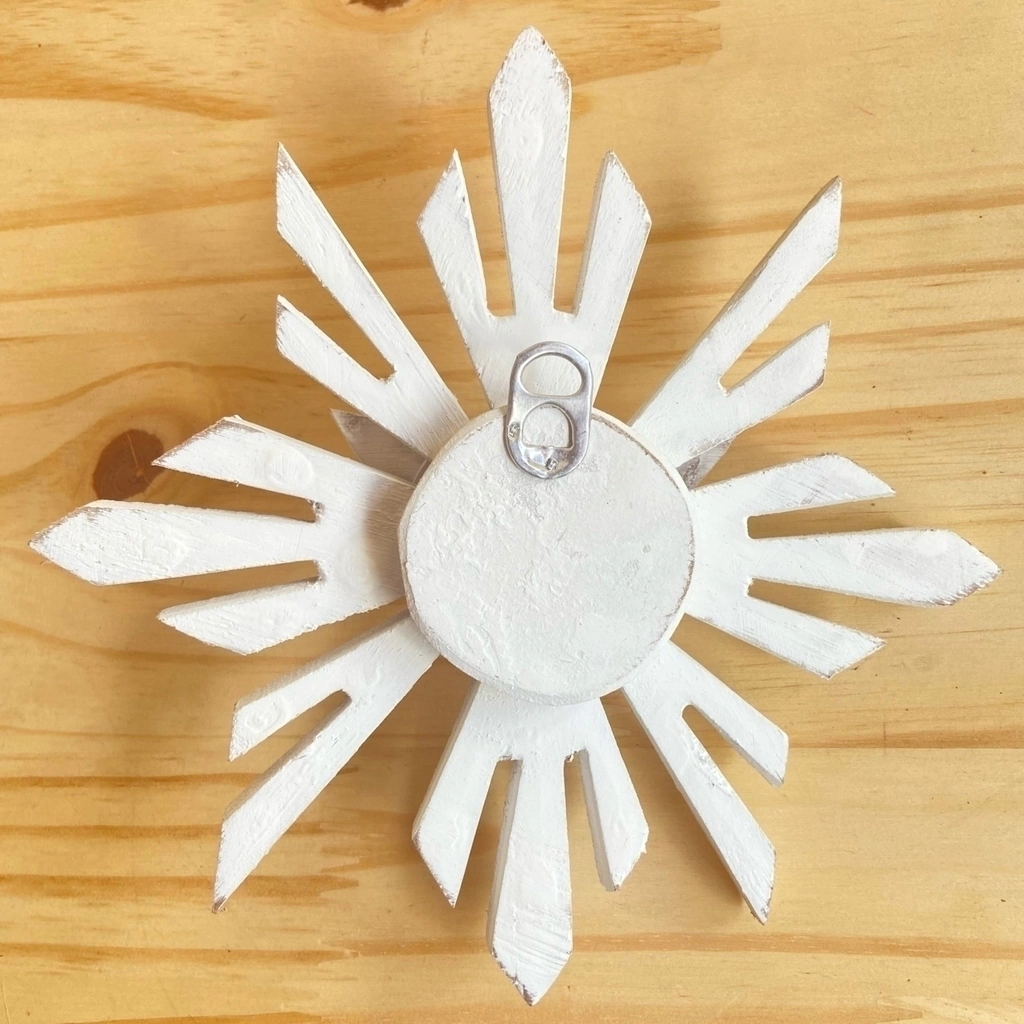 Mandala/Resplendor produzida artesanalmente, toda em madeira, na cor branca com detalhes em patina. Esta peça artesanal, feita com carinho, traz um toque sutil de elegância e proteção para o seu lar.