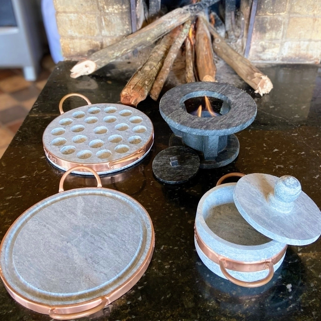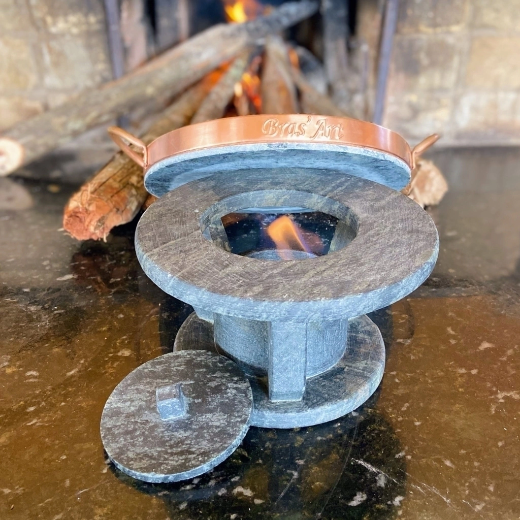 O Rechaud é todo feito em Pedra Sabão, sendo utilizado para manter o alimento sempre quente, além de ser uma linda peça e super decorativa